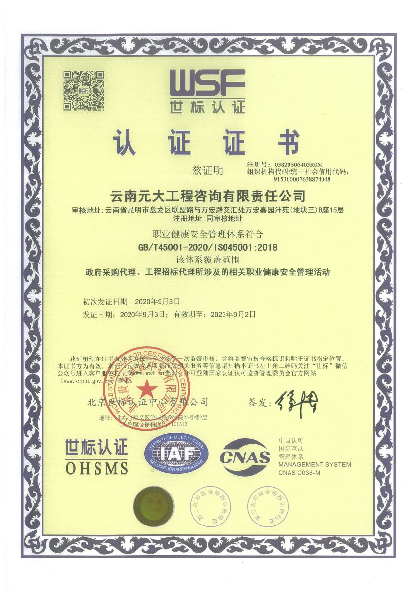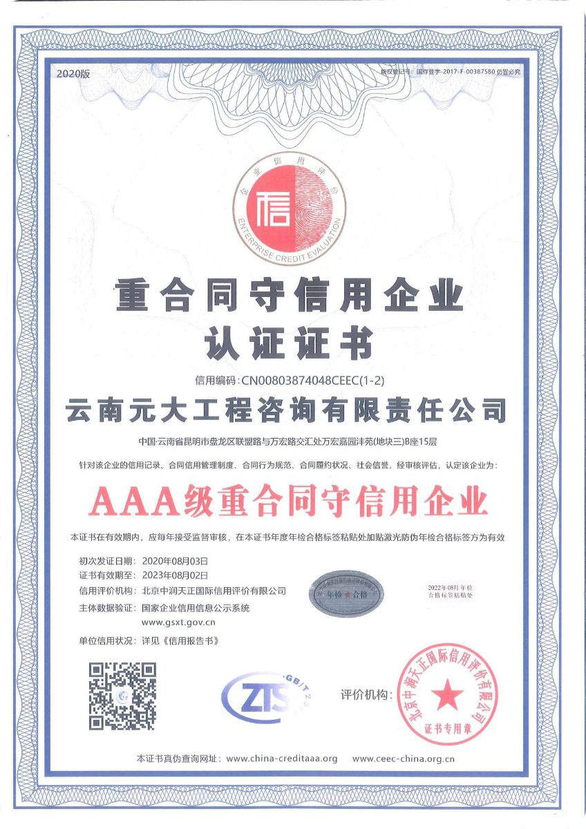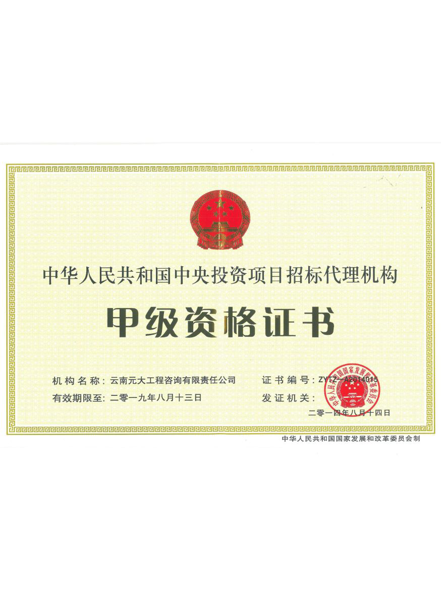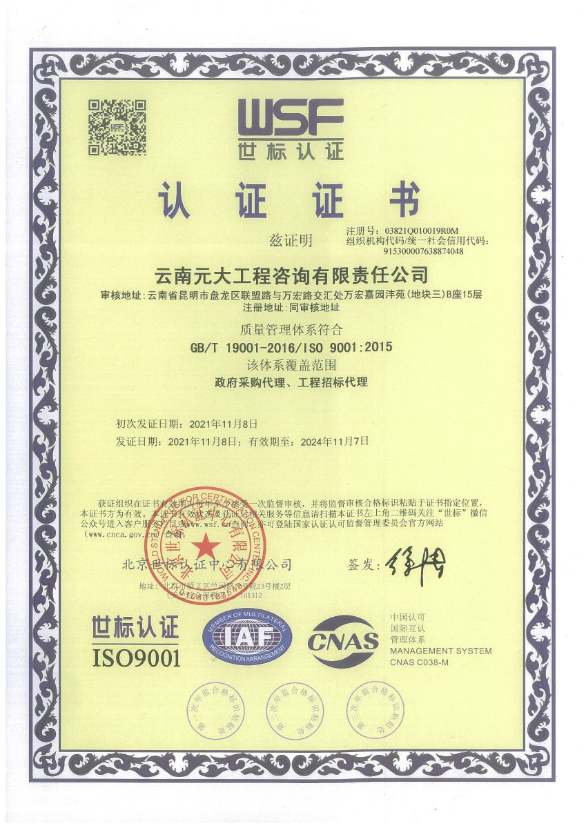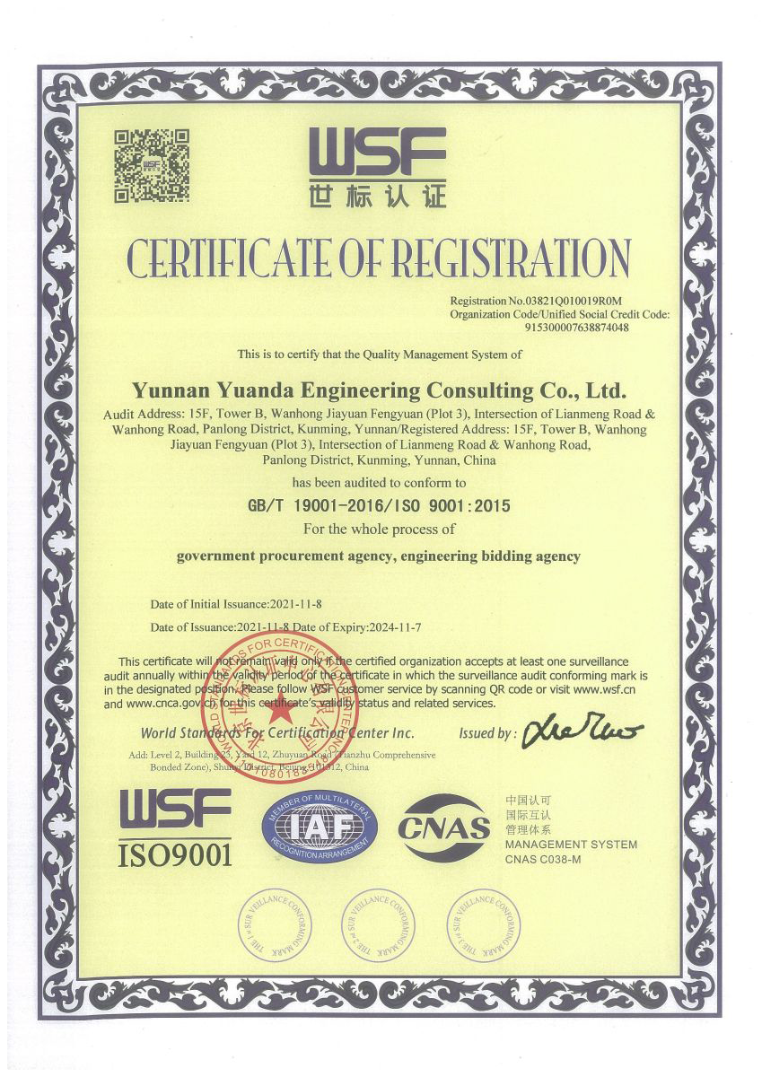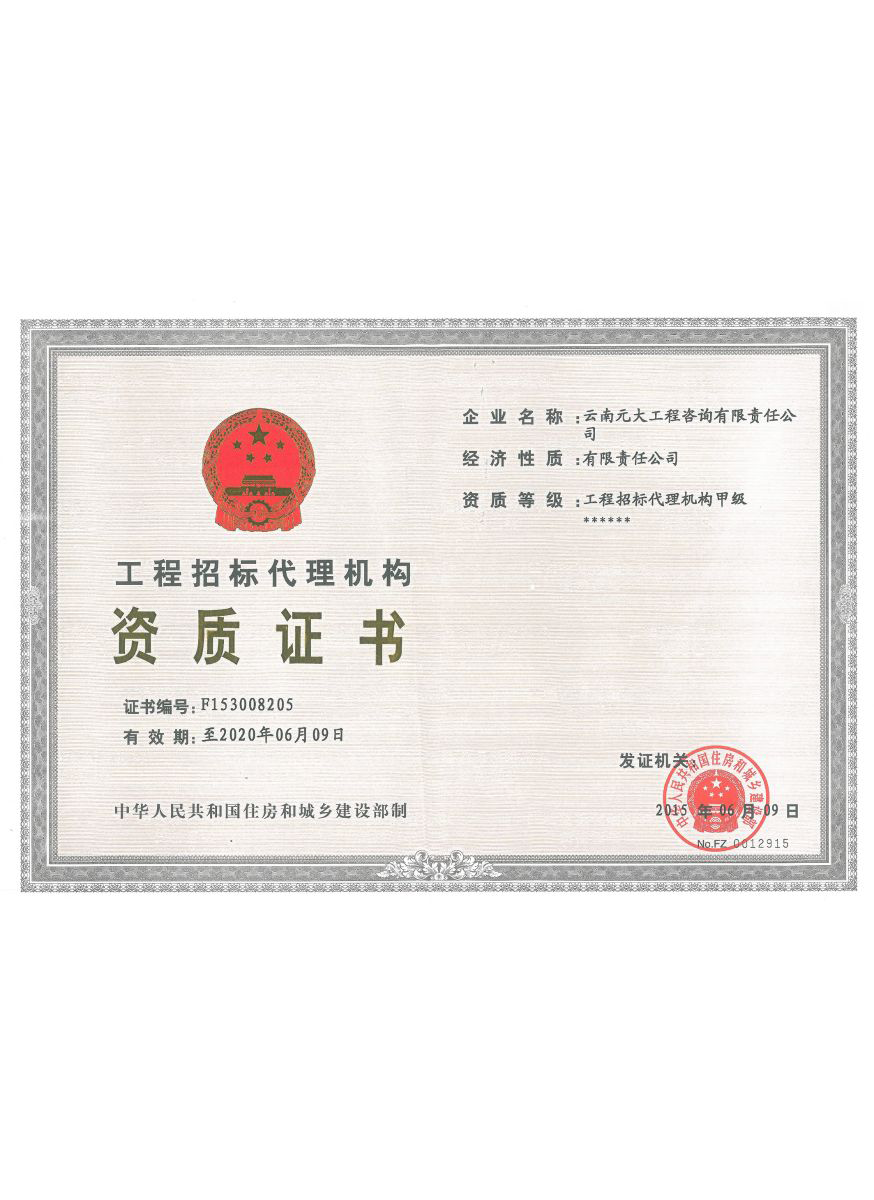 公司是云南省招標投標行業(yè)協(xié)會會長單位,現(xiàn)為云南省住建廳信用評級招標代理機構(gòu)AAA級單位。公司先后榮獲住建部頒發(fā)的“工程招標代理機構(gòu)甲級資質(zhì)證書”、財政部頒發(fā)的“政府采購代理機構(gòu)甲級資格證書”,并在財政部及中國政府采購網(wǎng)“政府采購代理機構(gòu)名單”登記備案、獲得國家發(fā)展改革委頒發(fā)的“中央投資項目招標代理機構(gòu)甲級資格證書”、商務部頒發(fā)的“國際招標機構(gòu)預乙級資格證書”、機電產(chǎn)品國際招標電子交易平臺頒發(fā)的“機電產(chǎn)品國際招標電子交易證書”、國家國防科技工業(yè)局頒發(fā)的“軍工涉密業(yè)務咨詢服務安全保密條件備案證書”。公司已通過ISO9001:2015質(zhì)量管理體系認證、ISO14001:2015環(huán)境管理體系認證、ISO45001:2018職業(yè)健康安全管理體系認證。納稅信用評價已連續(xù)三年被評為A級......